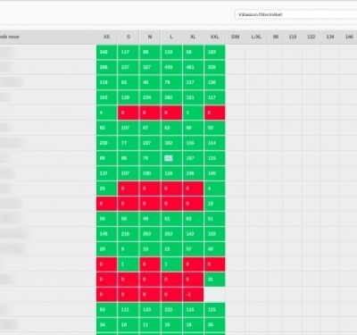 Ez a funkció táblázatos formába rendezi a raktáron lévő termékek darabszámát.