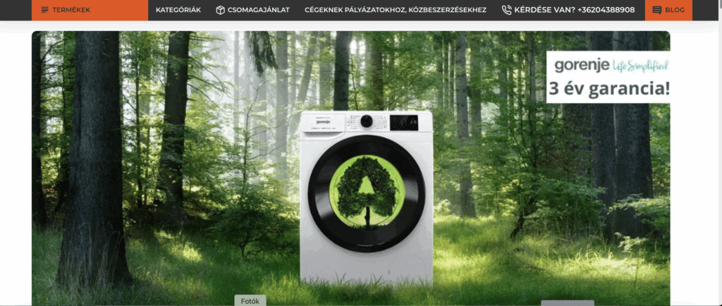 Professzionális megjelenés, technikai hangsúlyokkal, jól strukturált termékkategóriák